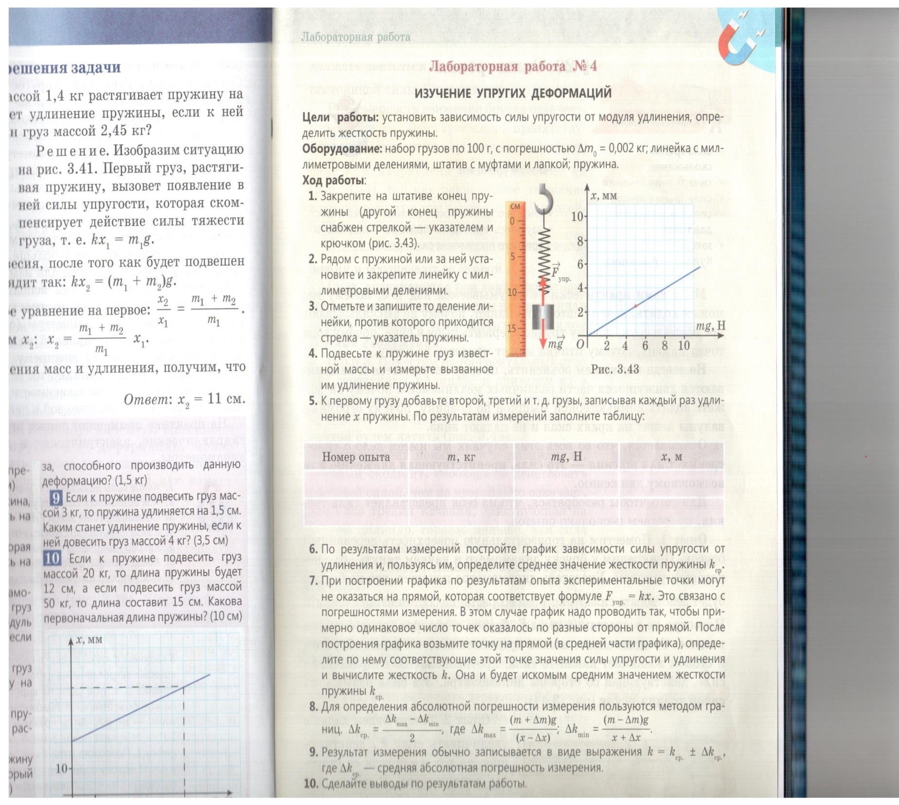 Құрал-жабдықтар: тақтай, динамометр, өлшеуіш сызғыш, білеуше, қысқышы (муфтасы) және табаны бар штатив, массалары белгілі жүктер жиынтығы.